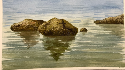 Как нарисовать камни на воде.