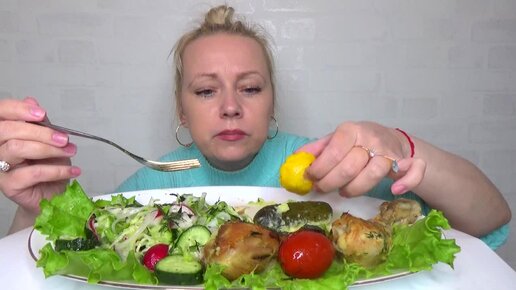 Картофельное пюре с куриными ножками. салат овощной. еда.