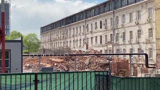 Обзор на демонтажные работы бывших корпусов чулочной фабрики на северо-западе Москвы