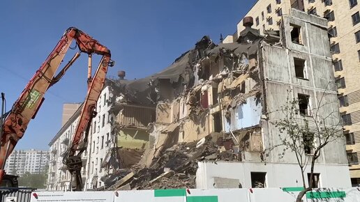 Обзор на демонтажные работы по сносу жилого дома на Кантемировской улице в Москве