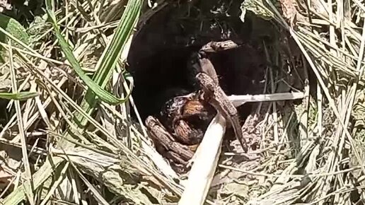 Крымский тарантул в норе. Дразним паука🕸️🕷️Смотреть можно, повторять не нужно ⛔