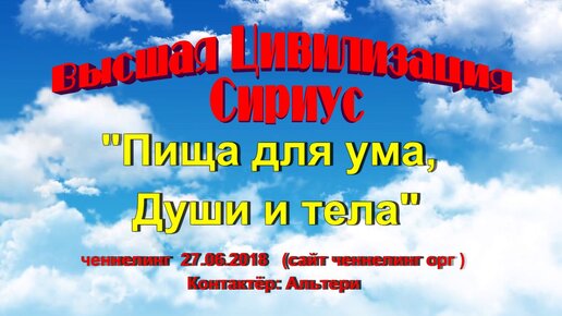 Ченнелинг Сириус «Пища для ума, Души и тела» 27.06.2018 Пища для ума и тела – у вас всегда ее много, а пища для Души это Духоматерия