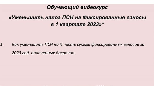 Как уменьшить ПСН на фиксированные взносы в 1 кв 2023