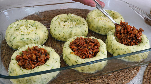 Очень вкусная картошка с начинкой из мяса и шампиньонов
