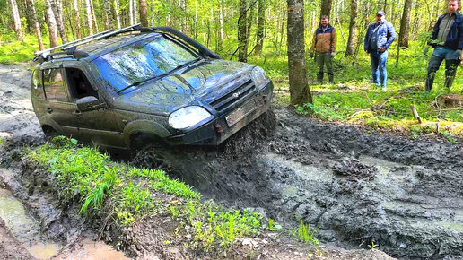 Парень на НИВЕ Шевроле решил доказать всем, что она едет и сунулся без лебедки в грязь. Остудился он быстро