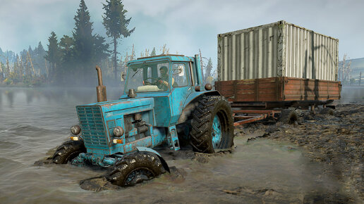 Перевезли большой контейнер по лесу на тракторе МТЗ 80 Беларус (симулятор Snow runner )