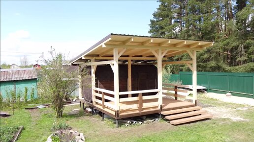 Навес с террасой для бани-бочки. ТРЕЙЛЕР