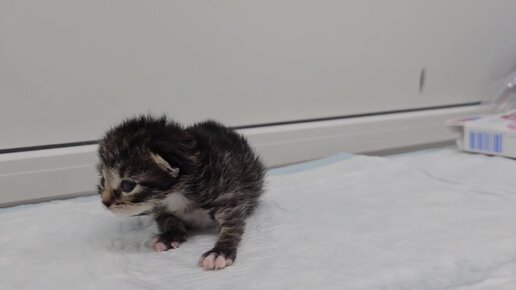 Котёнок Тайга на приёме у врача топчется. Натаптывает шаги...