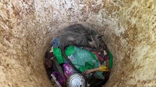 Маленький мексиканский опоссум попал в мусорное ведро на улице и застрял там. Зверек просидел в ловушке целую ночь
