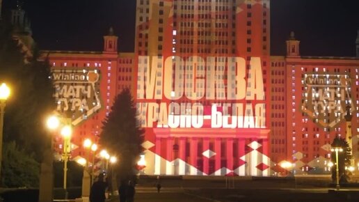Красно-белые цвета на здании МГУ😍