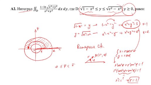 Вычисление интеграла в полярной системе координат (A2)