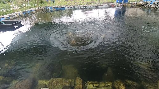 Дачный пруд, кормлю форель