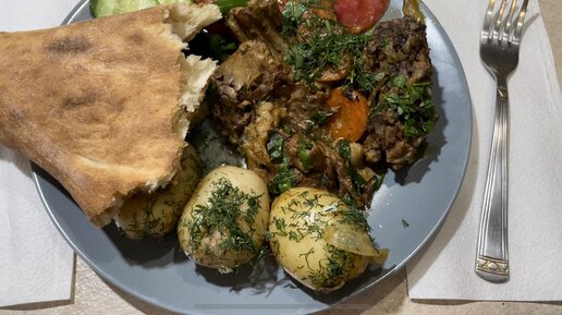 Нутрия томлёная с молодым картофелем.
