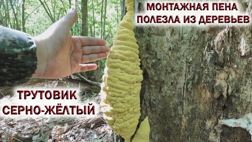 💥МОНТАЖНАЯ ПЕНА ПОЛЕЗЛА ИЗ ДЕРЕВЬЕВ В ПОДМОСКОВЬЕ👉 ТРУТОВИК СЕРНО-ЖЁЛТЫЙ🍄Грибы 2023 Май🌳🌲