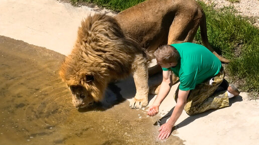 Два вожака на водопое! Вожак всех прайдов и человек-лев! Тайган