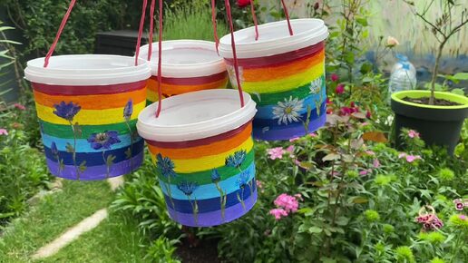 Не выбрасывайте пластиковые ёмкости... из них можно сделать дизайнерские кашпо