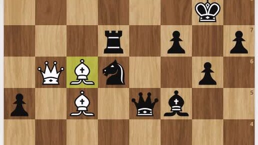 У чёрных лишняя пешка, чёрные напали на белого ферзяи ладью, однако есть гениальный выход