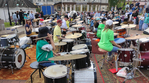 Взрослые и дети на 15 барабанных установках покоряют зрителей