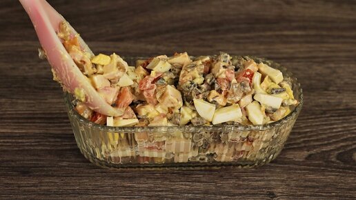 Салат с копченой курицей и грибами, просто и очень вкусно