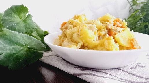 Тушёная картошка с овощами и куриной грудкой!