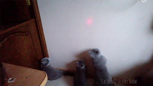 Британская кошка учит детей охотится за лазером на своем примере. Как в природе, дети берут пример с матери