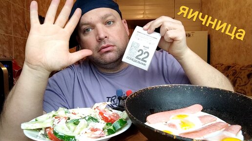 ОБЖОР яичница с сосисками и салат из овощей с майонезом