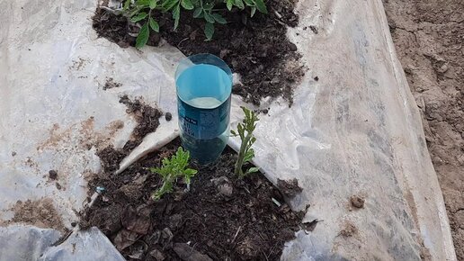 Полив через бутылки. Очень удобно для точечной подкормки растений