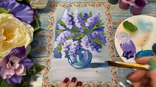 Рисуем букет сирени ватными палочками. Сирень гуашью. Рисование для начинающих.