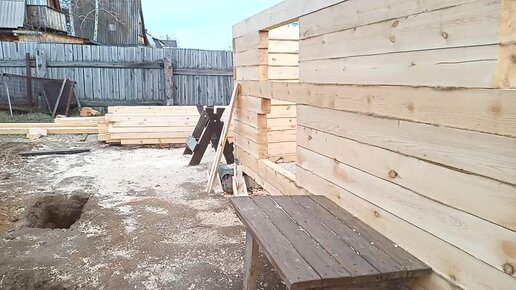 Строительство дачного домика. Поднимаю брус своими руками, в одиночку.