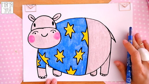 Как нарисовать БЕГЕМОТА поэтапно для детей | Рисуем животных Африки | Няня Уля
