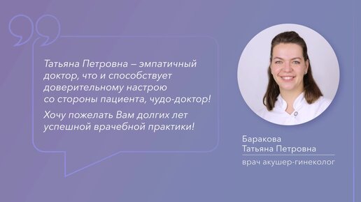 Отзыв пациента. Врач-гинеколог Баракова Татьяна Петровна