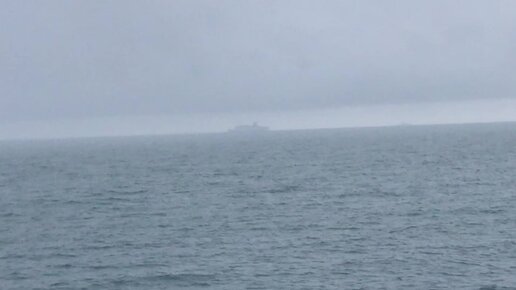 Вдали по морю у Крыма идёт теплоход «Князь Владимир». У него круиз по маршруту «Сочи-Новороссийск-Ялта-Севастополь».