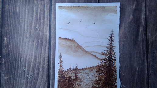 Пейзаж акварелью в одном цвете🖌️ Простое рисование для начинающих 💜