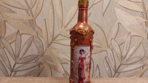 Мне очень нравится использовать в своей работе кракелюрный лак, который позволяет создать эффект "старины". Получилась красивая бутылочка!