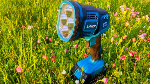 обзор с пазборкой яркого светодиодного аккумуляторного (акб makita) фонаря HEIMERDINGER