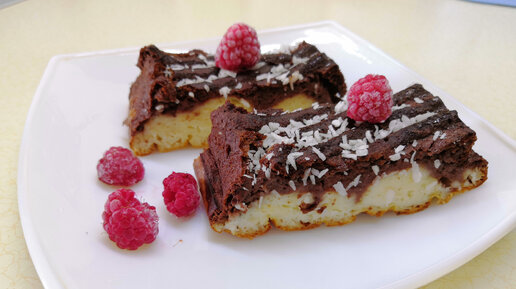 Сочетание брауни и нежной запеканки. Шоколадно-творожный ПП пирог