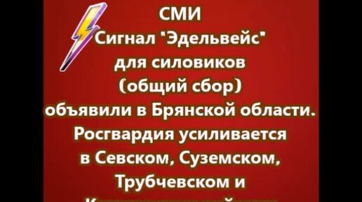 Сигнал Эдельвейс для силовиков (общий сбор) объявили в Брянской области.