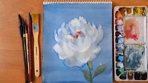 Рисую цветок белый пион акварелью. I draw a white peony flower in watercolor.