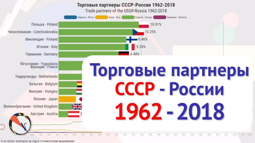 С кем торговал СССР и Россия 1962 - 2018. Экспорт