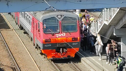 Электропоезд ЭД4М-0327 подаётся под посадку на станции Новосибирск-Главный