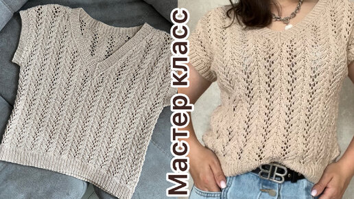 Мастер-класс по вязанию топа простым ажурным узором и v-образной горловиной.
