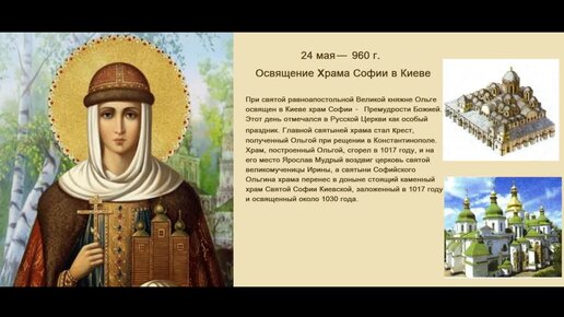Освящение первого (возведенного княгиней Ольгой) Киевского Храма Святой Софии (960)