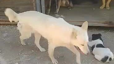 Трусишка Дили учится гулять. Её поддерживают несколько собак и даже малышка (до съёмки малышка зубами тянула Дили за цепочку). Слепыш умудрился споткнуться о цепочку, напугался сам и напугал её.