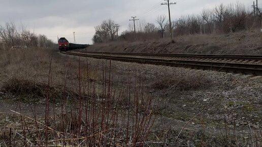 2ТЭ25Км - 0026 с грузовым поездом.