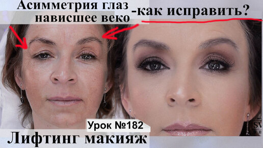 Макияж лифтинг.Макияж для нависающего века.Коррекция асимметрии.Урок№182