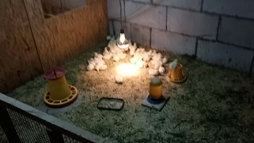 Цыплятам тесно, пересаживаю на пол в клетку.
