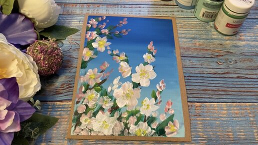 Рисуем цветущую яблоню гуашью или акрилом. Яблоня в цвету рисунок. Как нарисовать цветы яблони. Рисование для начинающих