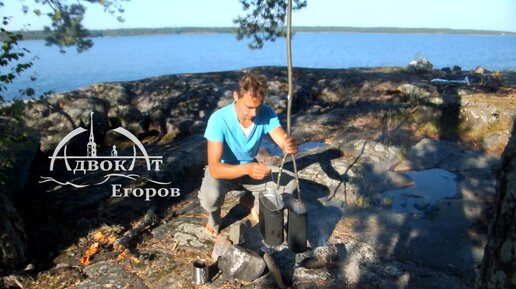 Подвес котелка на ветку дерева и уха из рогоза
