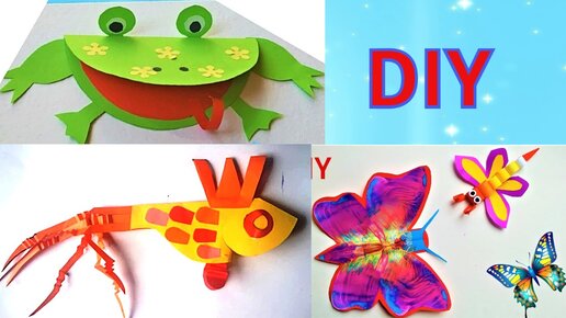 Как просто сделать рыбку, лягушку и бабочку из бумаги. Поделки в школу и садик.