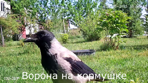 Ворона на кормушке. Жарко. Новая камера.